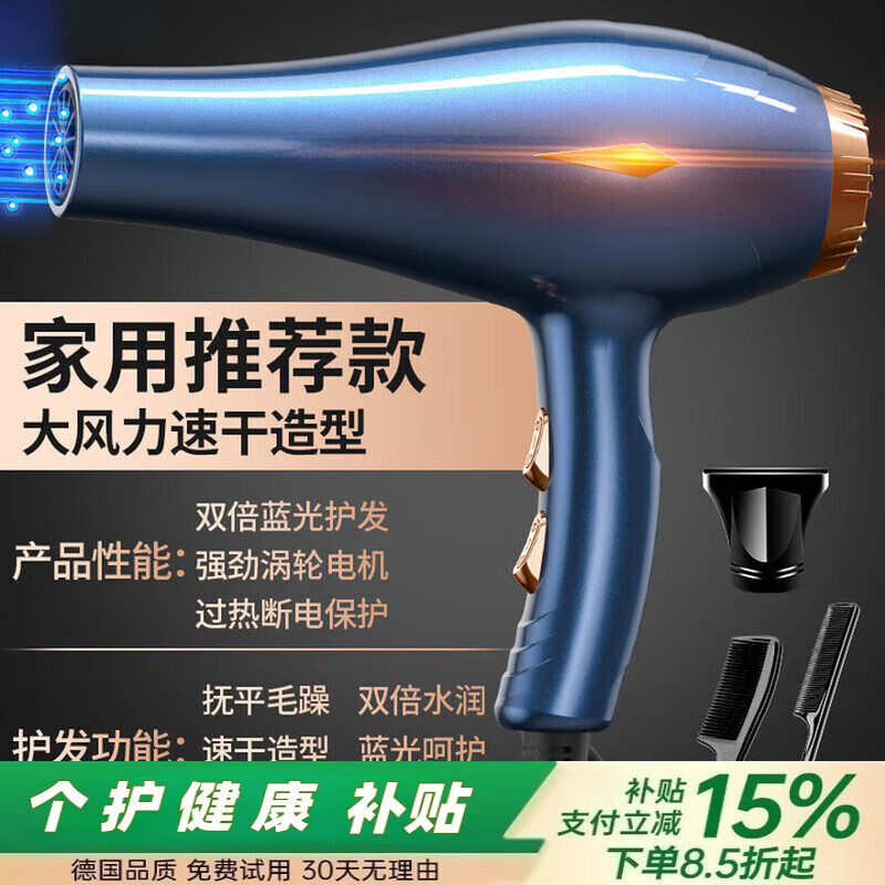戴森德乐电吹风机家用大风力大功率负离子速干护发静音风筒不伤发造型风机理发店冷热吹风筒 劲风蓝色1800款送集风口 抚平毛躁+蓝光呵护+恒温护发