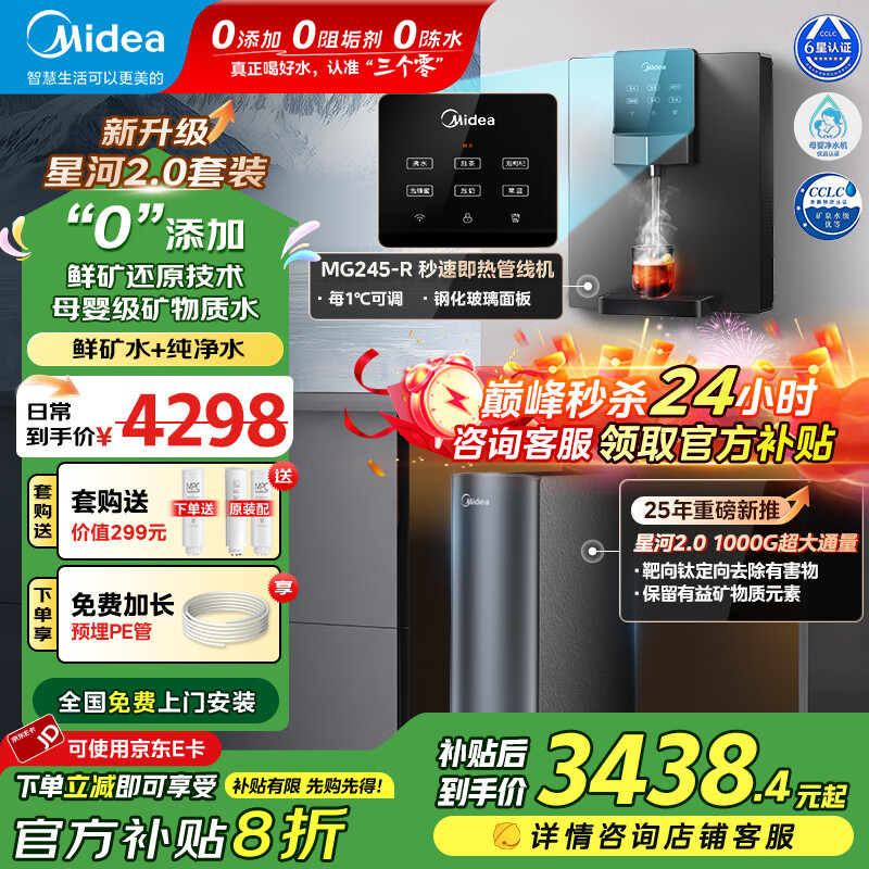 美的(Midea)星河2.0净水机净矿净水器母婴直饮0阻垢厨下RO反渗透矿物质直饮加热一体机管线机套装 【星河2.0热销款】净水器+即热管线机套装