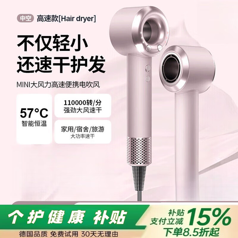 戴森德乐高速吹风机速干护发家用电吹风负离子不伤发大功率吹风筒礼物便携低噪恒温 [淡粉色]单风嘴|-全功能1:1 3C认证更安全+45亿水润负离子
