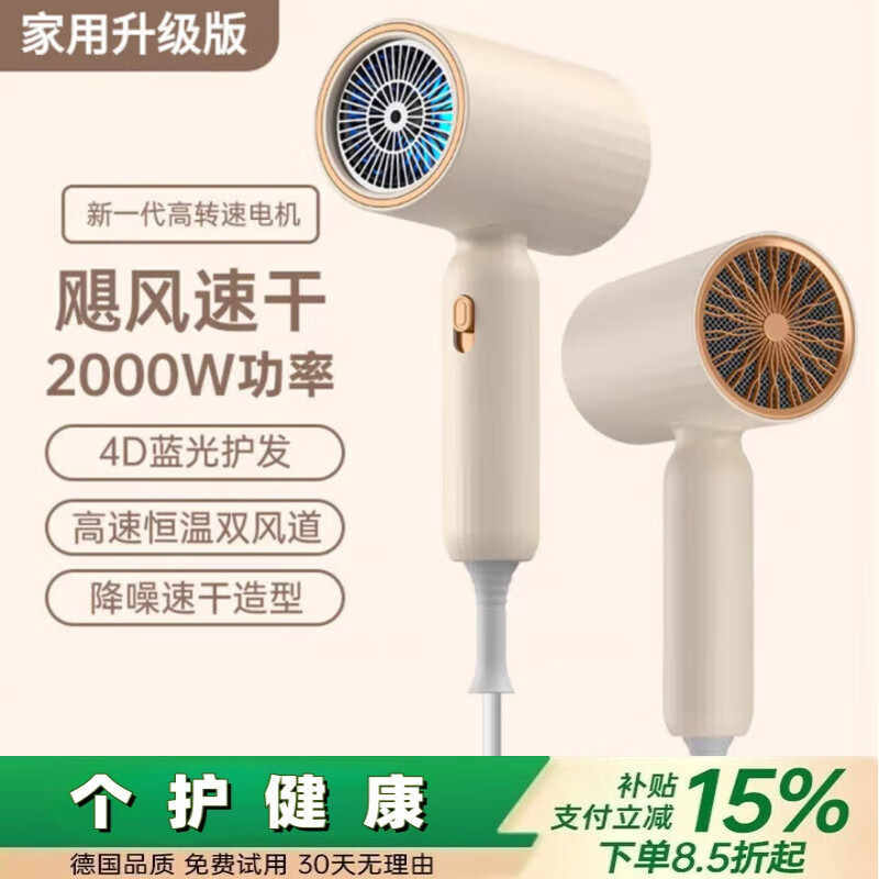 戴森德乐电吹风机学生宿舍用学生2025新款吹头发静音住校用品小型便携式宿舍用 居家奶咖/2000W蓝光护发恒温速干低噪运行 4D蓝光护发+高速恒温双风道