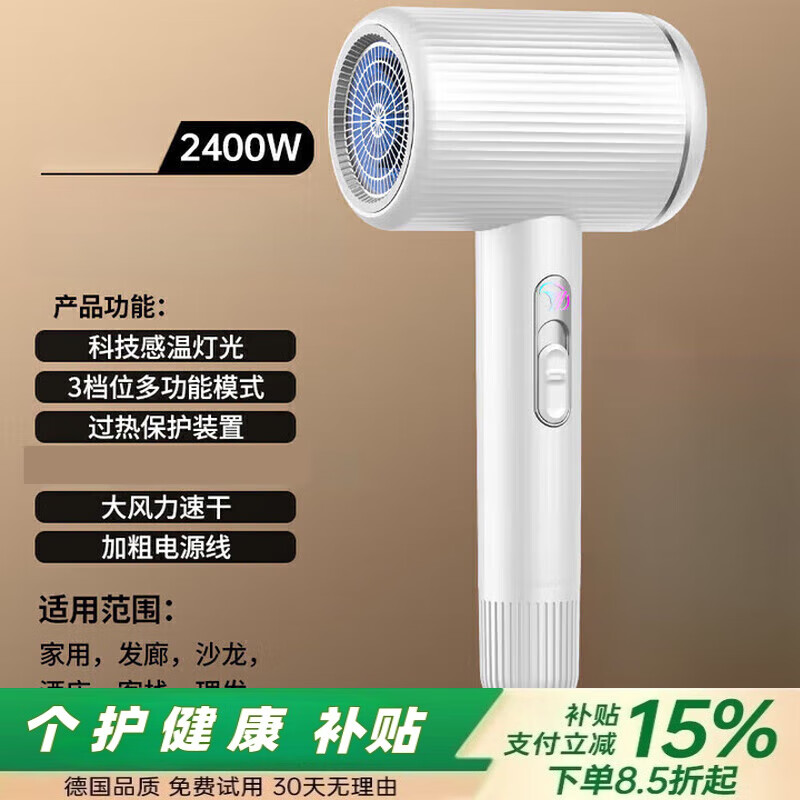 戴森德乐护发吹风机高速家用家用静音大功率不伤发发廊2400W速干吹风筒理发店专用风筒发廊 简约白版2400w 恒温负离子+过热保护
