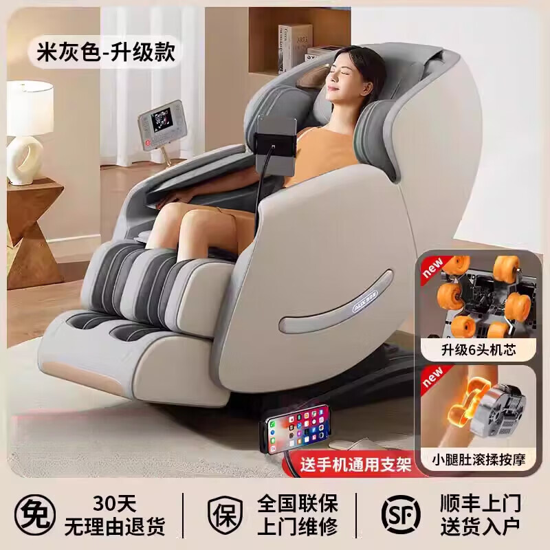 奥克斯(AUX)按摩椅家用全身全自动智能电动揉捏多功能2025新款 米灰色【捶背拍打推拿揉捏】 6头机芯+语音控制