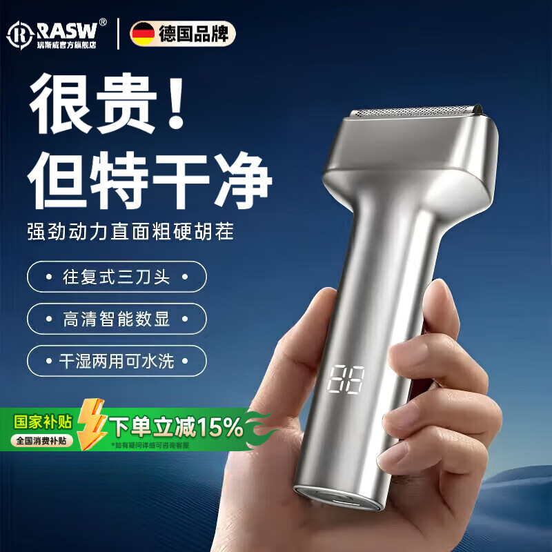 RASW德国官方正品】剃须刀电动男士2025新款往复式刮胡刀小锤子电动便携迷你情人节送男士男友父亲礼物 【星空灰】往复式剃须精钢三刀头护肤不夹须一遍剃净