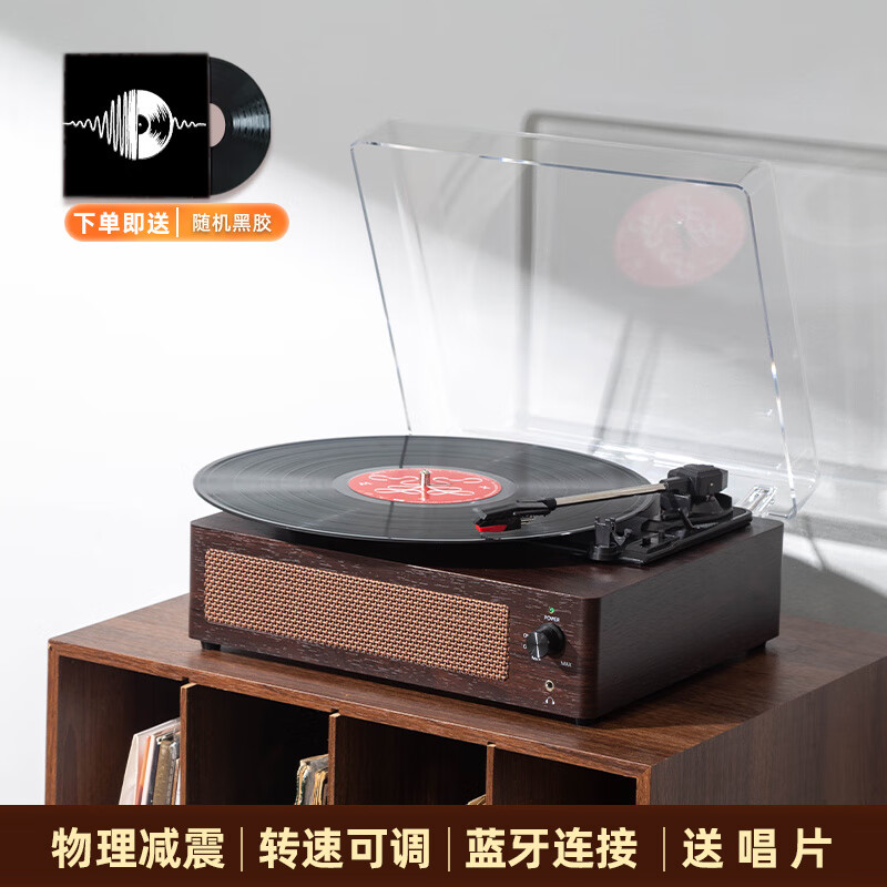 MIDDIX麦迪克黑胶唱片机复古留声机音响一体生日礼物 胡桃木【旗舰版音质】【内置双喇叭蓝牙连接送唱片代写