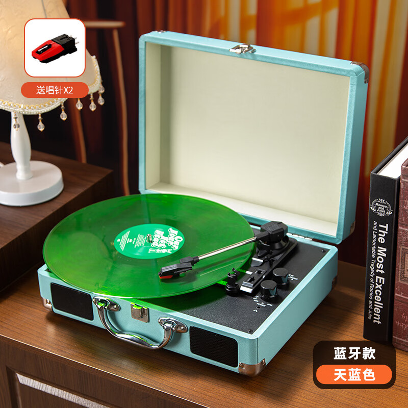 MIDDIX黑胶唱片机蓝牙音响复古留声机欧式客厅摆件新婚生日礼物 冰河蓝【旗舰版音质】【减震转速可调蓝牙连接赠送唱针