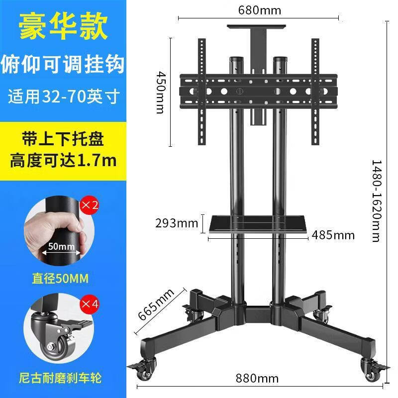 双幼电视机移动支架通用可升降带轮推车壁挂屏幕旋转电动直播落地立式 基础款【30-75英寸】承重210斤 双置物盘
