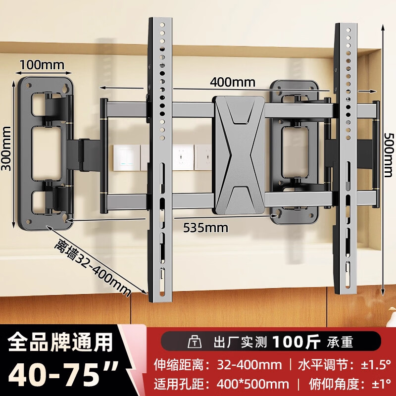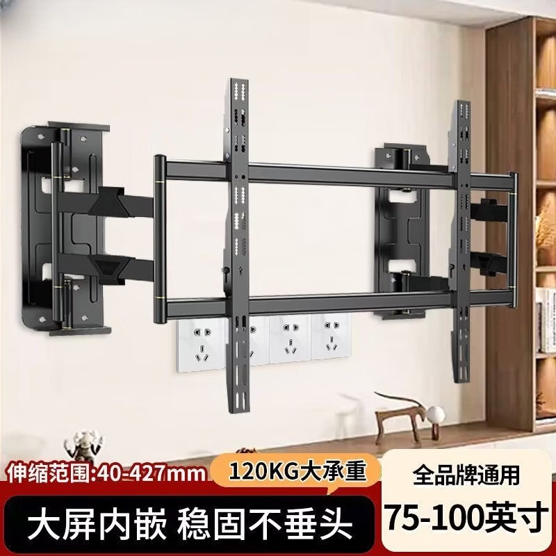 双幼超薄内嵌电视机伸缩挂架75-120寸品牌通用多功能避开插座稳固承重 K75超薄3.2cm适用55-75寸