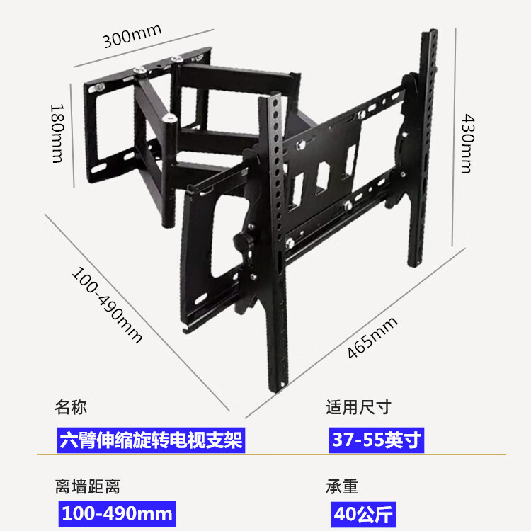 双幼电视伸缩挂架 通用壁挂旋转支架海信创维TCL小米32 43 55 65 75寸 【标准款LB-440】六臂旋转灵活轻便 32-1