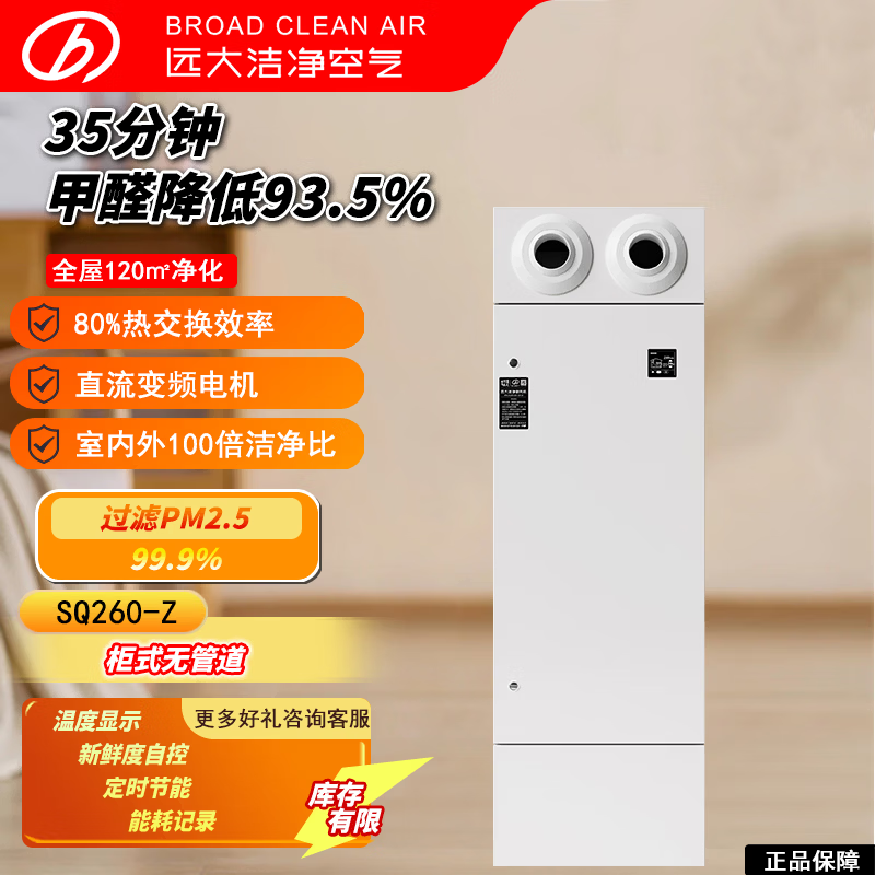 远大(BROAD)全屋新风系统家用通风无管道直吹大风量柜式双向全热交换除雾霾除甲醛除菌SQ260-Z/SQ500-Z 立柜式 260m³/h 80-119㎡
