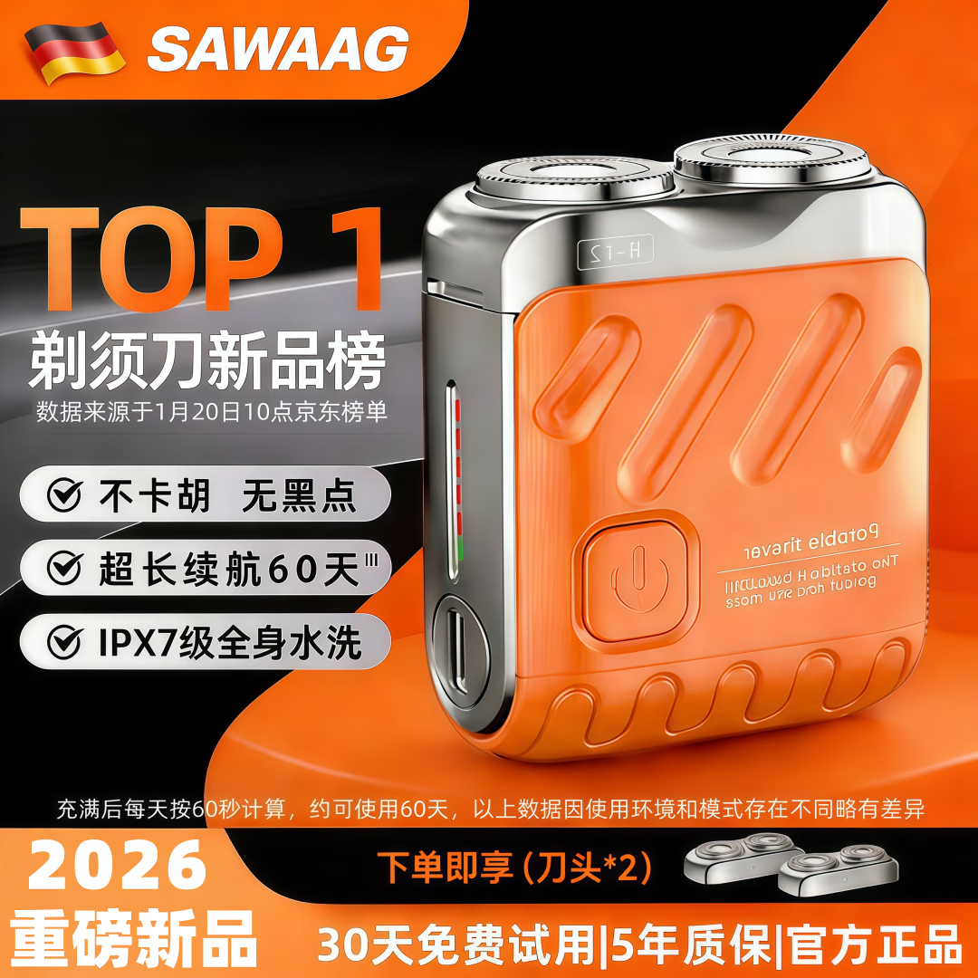 飒望【剃须刀热卖第一】德国剃须刀电动男士2025新款便携款刮胡刀情人节新年生日礼物送男友父亲爸爸 升级5代pro【赤霞橙】智能数显+超长续航 情人节礼物送男友父亲爸爸老公