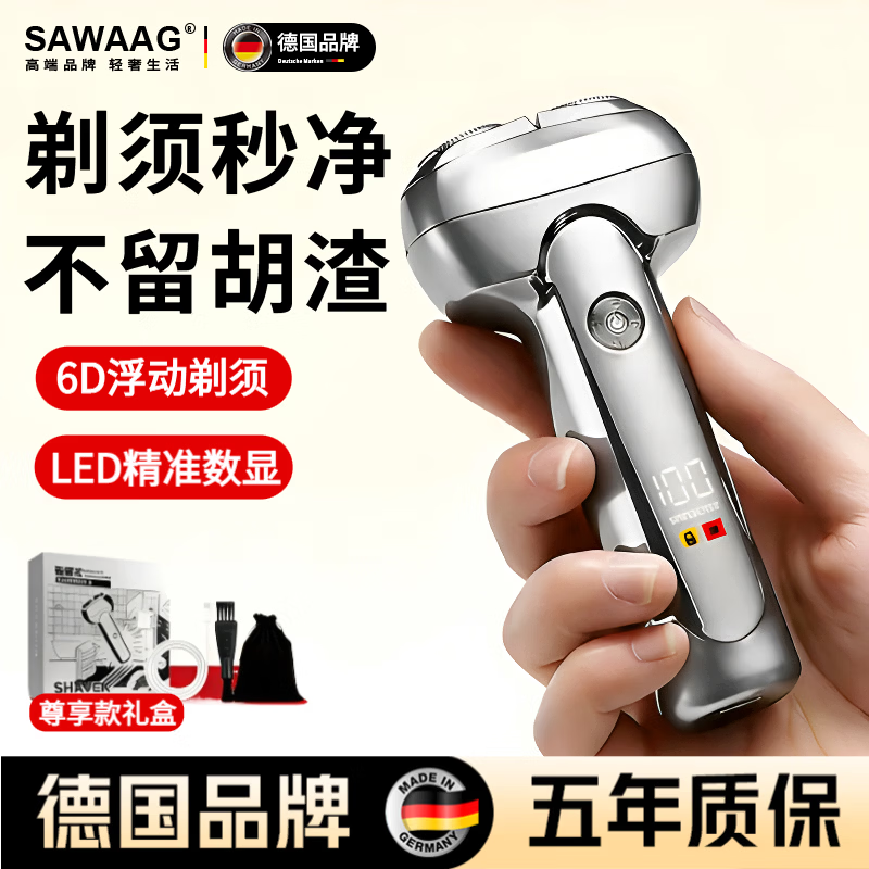 飒望【德国品牌】德国剃须刀电动男士2025新款刮胡刀热卖第一往复式原装便携款水洗强力小钢炮送男友 尊享礼盒款【亮钛银】高清大屏数显 磁悬浮动双刀头