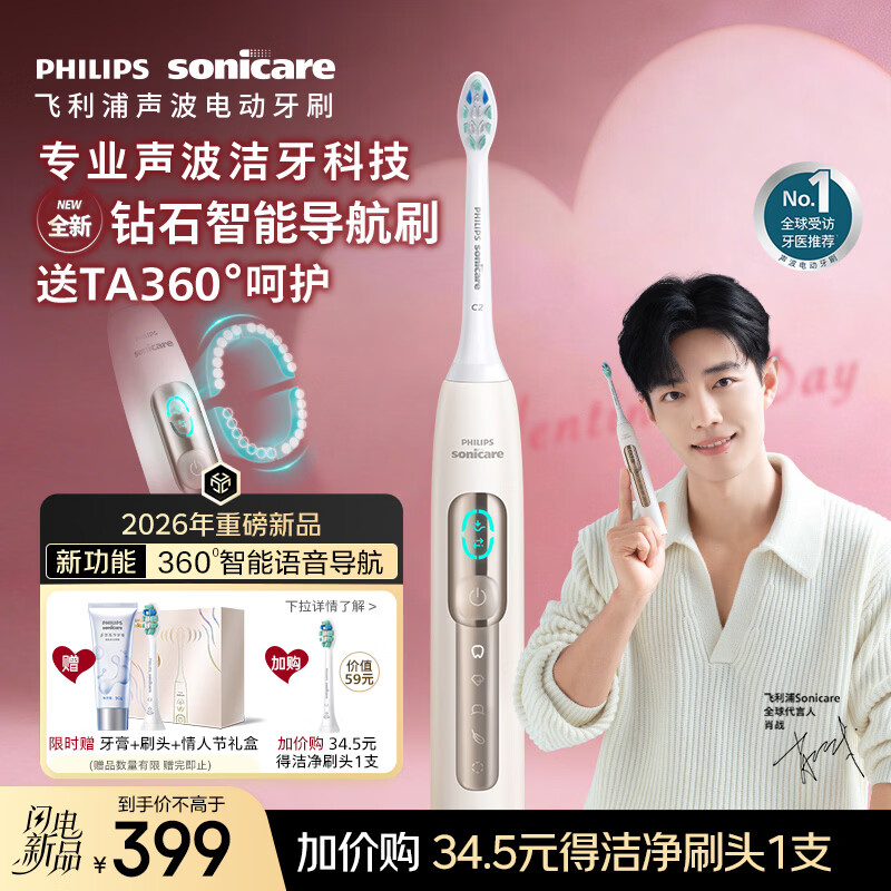 飞利浦(PHILIPS)钻石智能语音导航电动牙刷 年货节礼物 情人节礼物送情侣男生/女友力度/漏刷提示HX5681