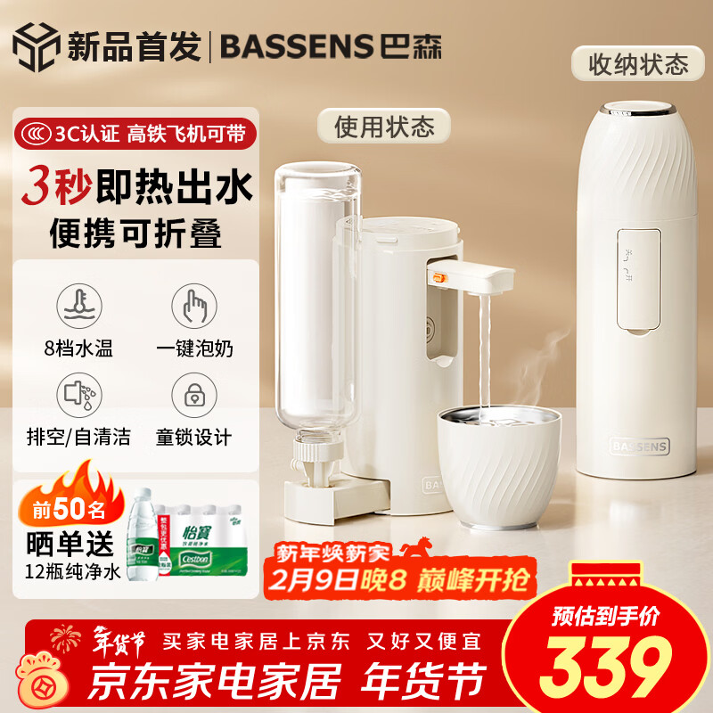 BASSENS巴森便携即热式饮水机小型家用宿舍即热烧水壶旅行冲奶泡奶速热电热水壶年会采购标配款BS-CS92