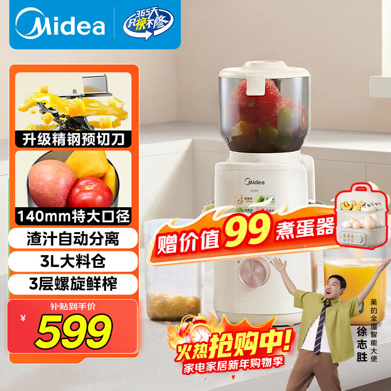美的(Midea)NFC原汁机多功能家用电动榨汁机冰淇淋机全自动冷压果汁果蔬机渣汁分离MJ-ZZ15W2-049