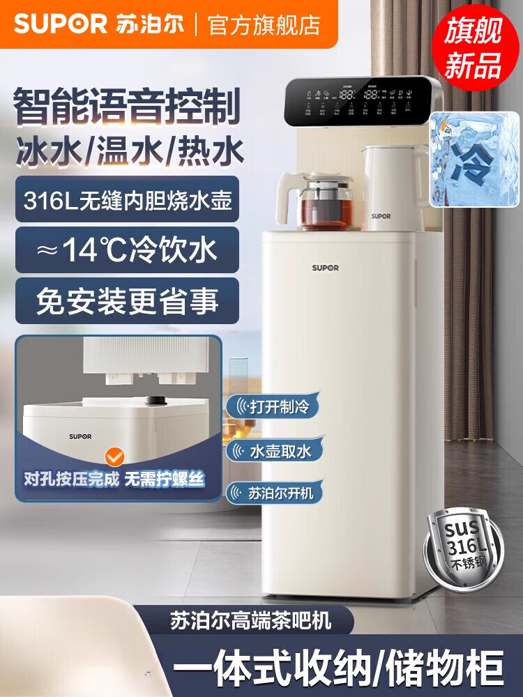 苏泊尔(SUPOR)茶吧机冷热两用家用自动饮水机语音遥控触屏一体机烧水壶 白色即热制冷型 即热制冷型 冰温热