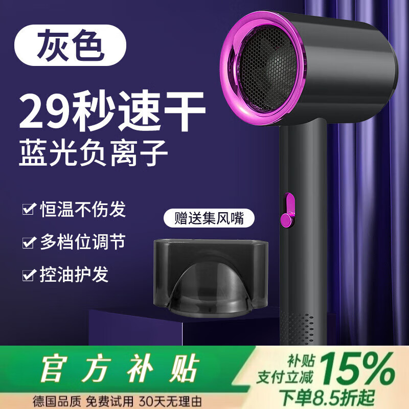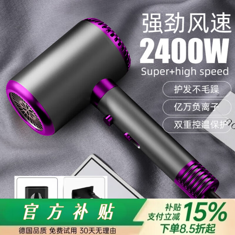 戴森德乐通用吹风机家用静音负离子大功率不伤发3000W高速风筒发 星灰紫2400W智能+负离子变频