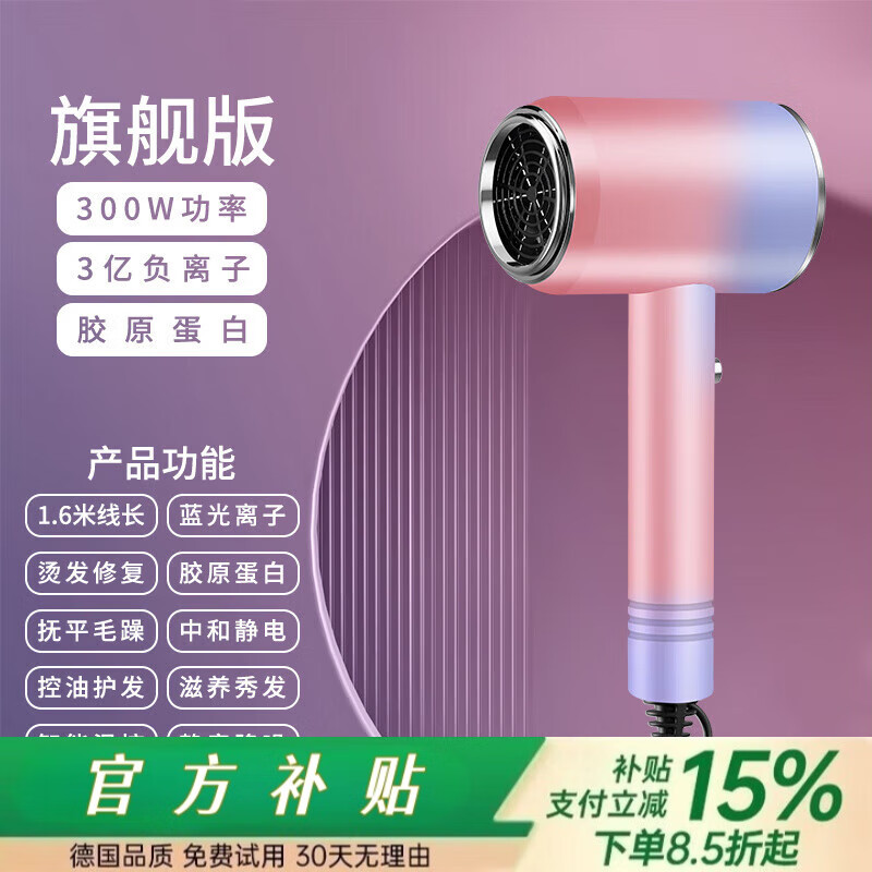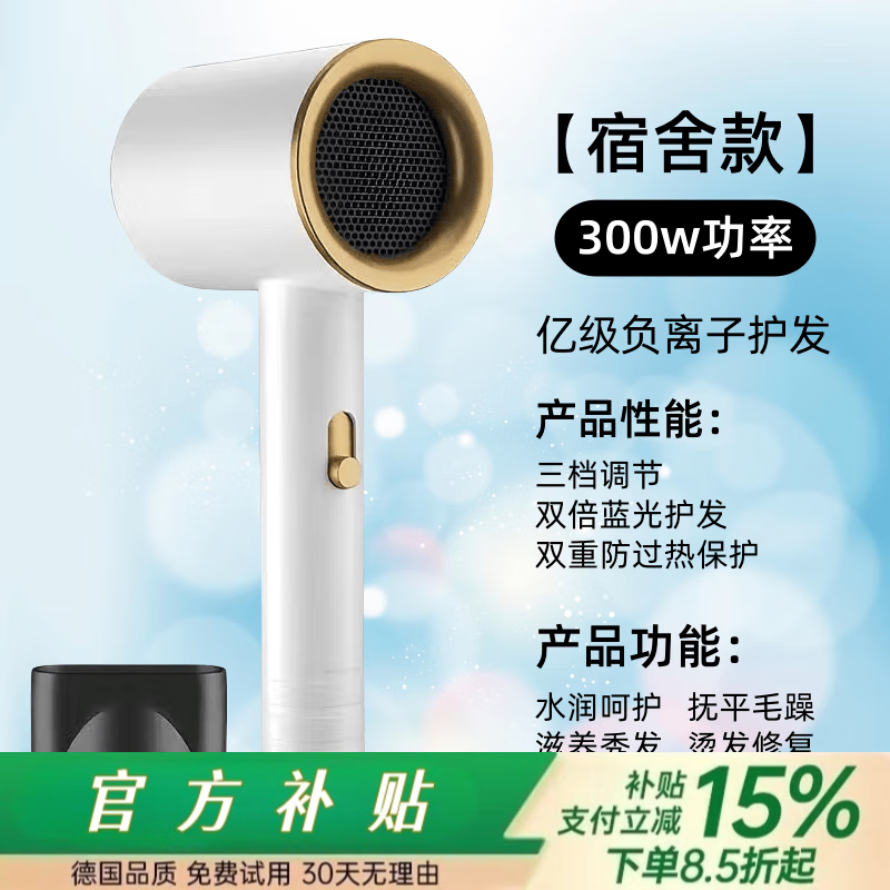 戴森德乐电吹风机负离子宿舍用学生专用筒800W以下500W小功率300W 极光粉300W宿舍专用3亿蓝