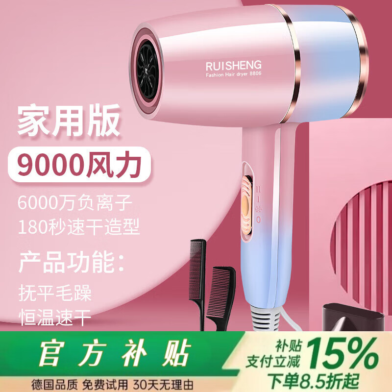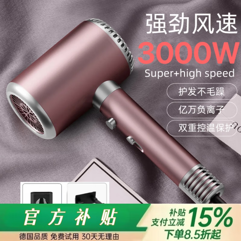 戴森德乐通用吹风机家用静音负离子大功率不伤发3000W高速风筒发 樱花粉3000W智能+负离子变频