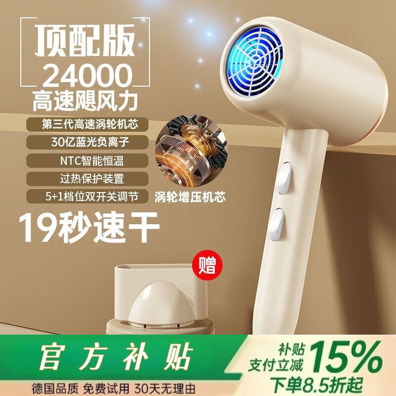 戴森德乐新款高速吹风机家用高速大功率负离子静音速干不伤发蓝光 奶茶色高转机芯+ 顶配版24000高速飓风力+20
