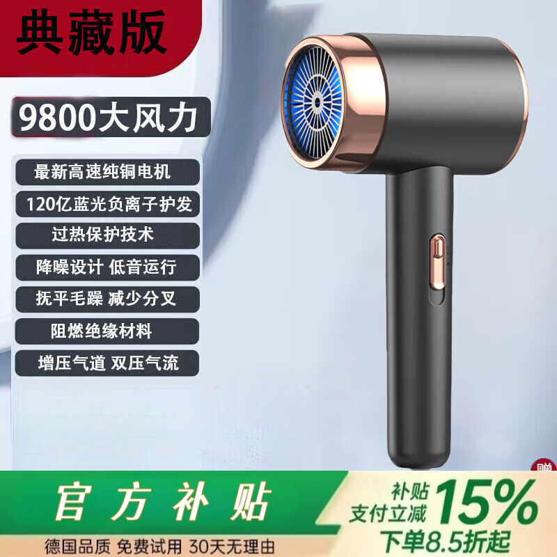 戴森德乐吹风机学生宿舍吹风机负离子电吹风大功率速干护发蓝光家 轻奢灰高速纯铜机 9800万风力+120亿等离子水