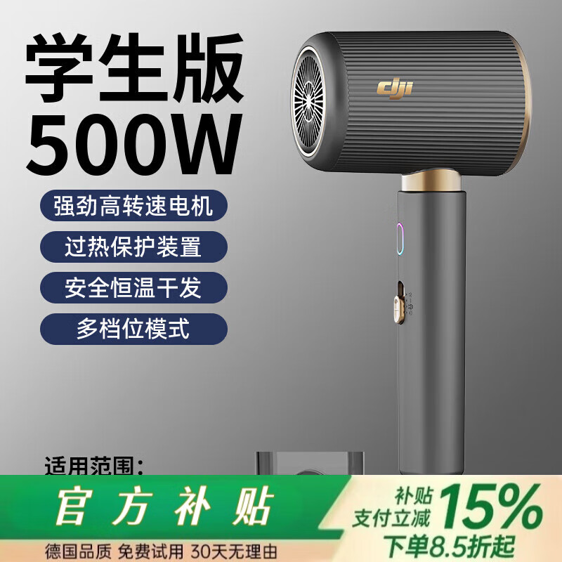戴森德乐新款电吹风机家用速干大功率负离子护发静音学生宿舍用小 灰色500W9千万负离子_降噪款