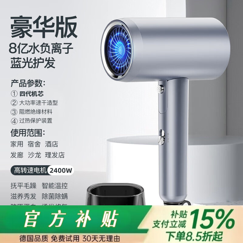 戴森德乐电吹风机折叠家用宿舍便携负离子护发新款大功率大风力静 蓝2400W豪华8亿负离子折叠