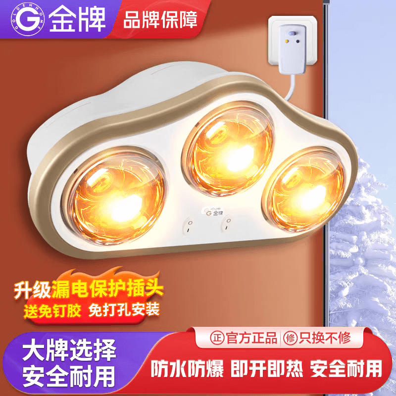 skingcond德国灯暖浴霸照明一体多功能卫生间壁挂式挂墙暖光灯取暖器免打孔 3灯壁挂高热金泡漏保