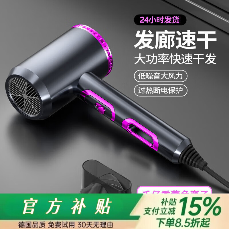 戴森德乐吹风机家用静音负离子大功率不伤发学生宿舍便携吹风筒理发店专用大风力高速干降噪护发电吹风 紫色800w学生宿舍 胶原蛋白+水润负离子