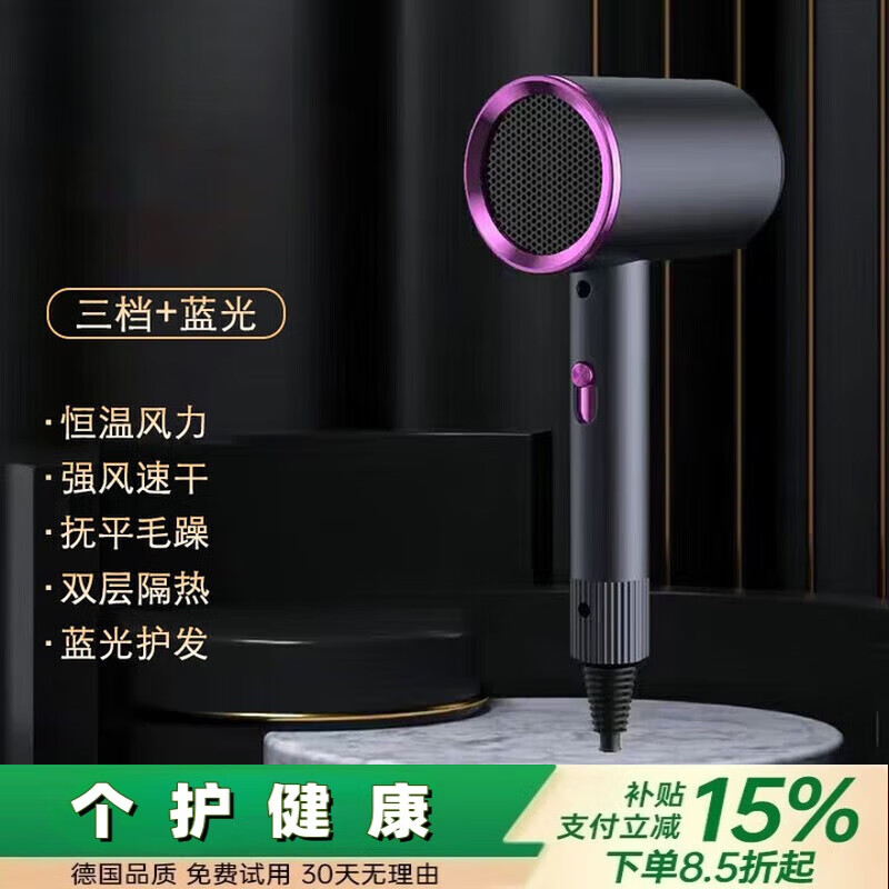 戴森德乐电吹风机发廊专用大功率电吹风机家用大风力静低音负离子不伤发吹风筒理发店蓝光电吹风恒温 蓝光负离子(星空灰) 蓝光水润护发+断电保护