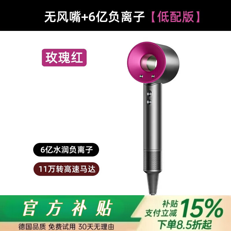戴森德乐高速电吹风机家用负离子护发大风力中空无叶速干降噪电吹 玫瑰红6亿水润负离子无