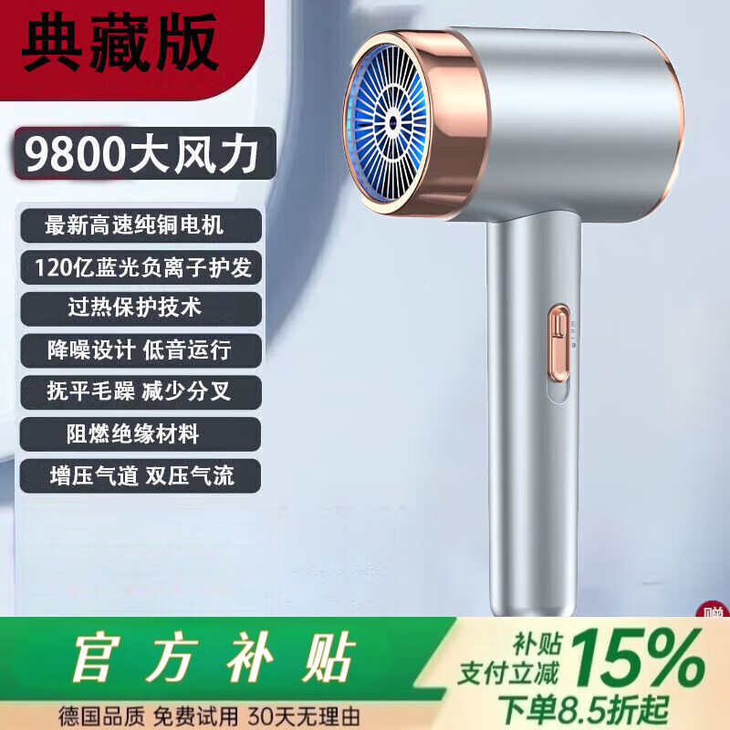 戴森德乐吹风机学生宿舍吹风机负离子电吹风大功率速干护发蓝光家 徕芬银高速纯铜机 9800万风力+120亿等离子水