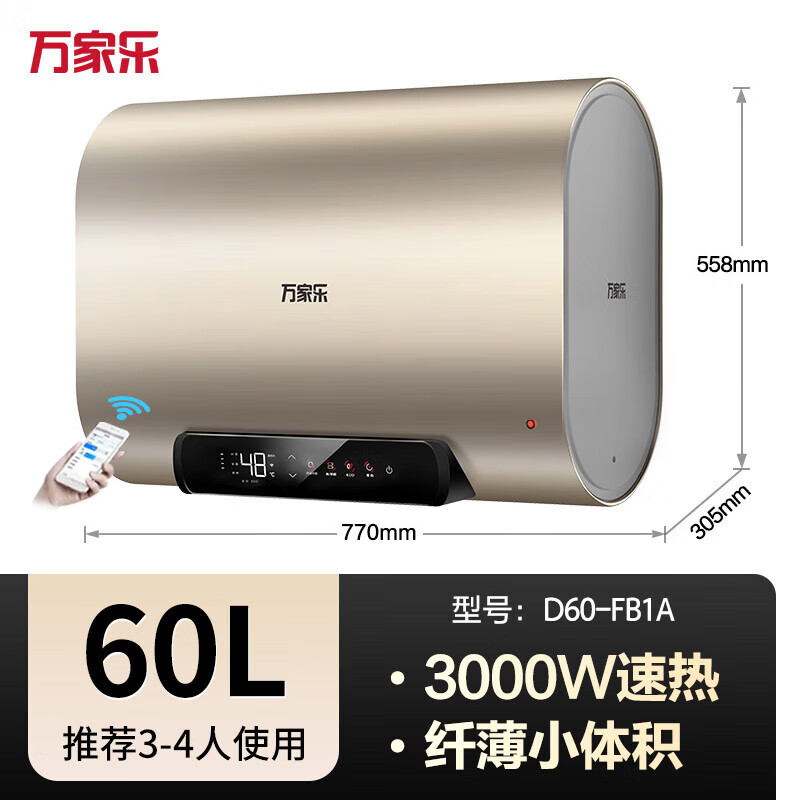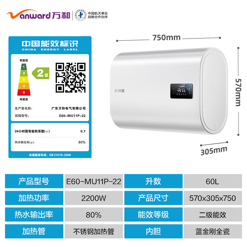 万和(Vanward)扁桶电热水器洗澡家用储水式60L节能速热官方MU11 E60-MU11P-22【60L】