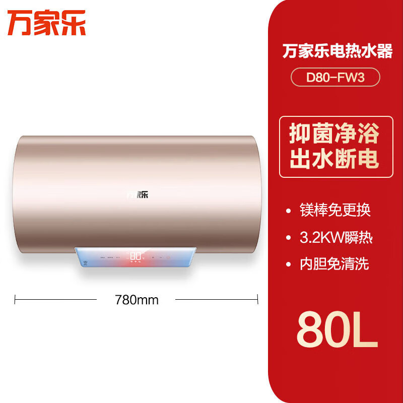 macroFW3电热水器家用节能储水出水断电60L80升一级能效 D80-FW3【80L】