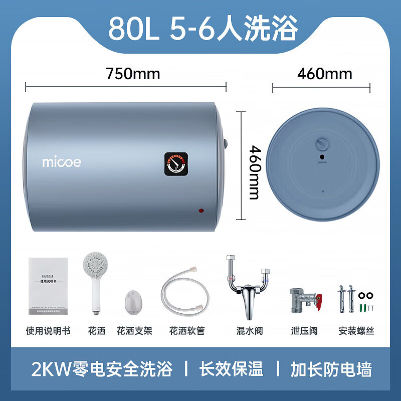 四季沐歌(MICOE)热水器电家用50L卫生间储水式40升速热60L洗澡节能租房用 HJ1【80L机械款】