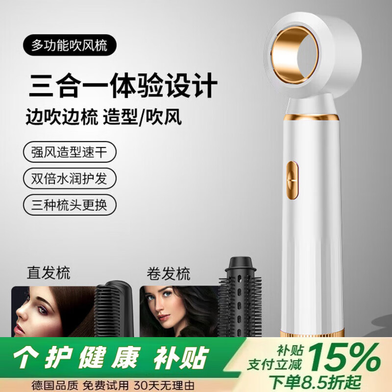 戴森德乐2025新款三合一吹风机静音热风梳懒人多功能自动卷发棒直发器吹风机不伤发吹风梳 象牙白(三合一) 强风造型速+干双倍水润护发