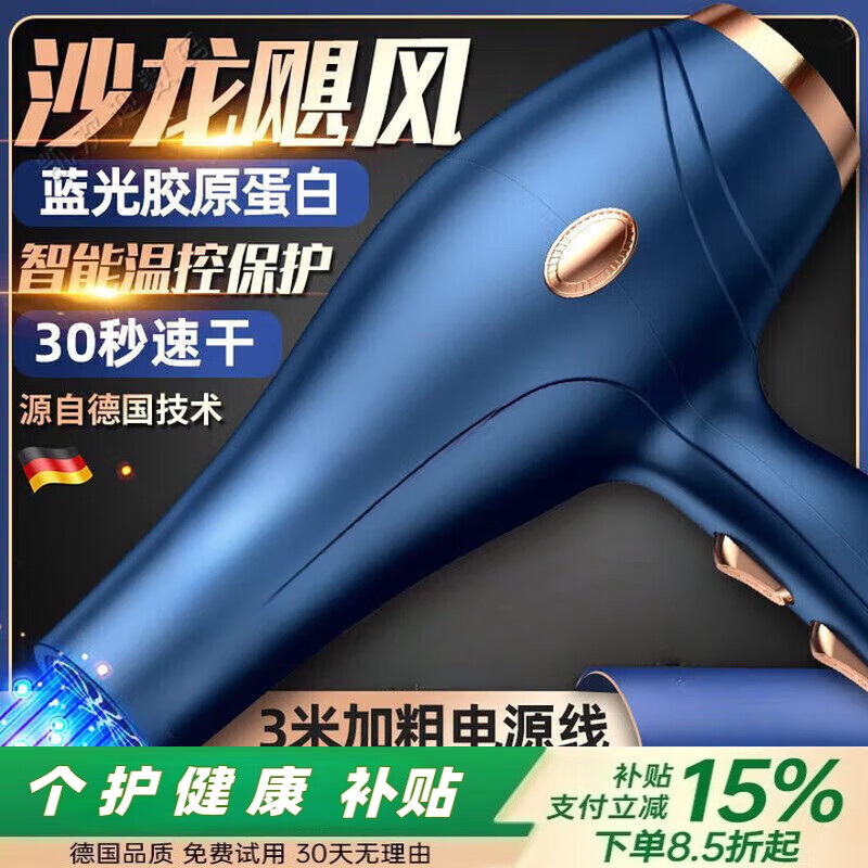 戴森德乐电吹风机发廊专用大功率电吹风机家用大风力静低音负离子不伤发吹风筒理发店蓝光电吹风恒温 蓝光负离子(皓月白) 蓝光水润护发+断电保护
