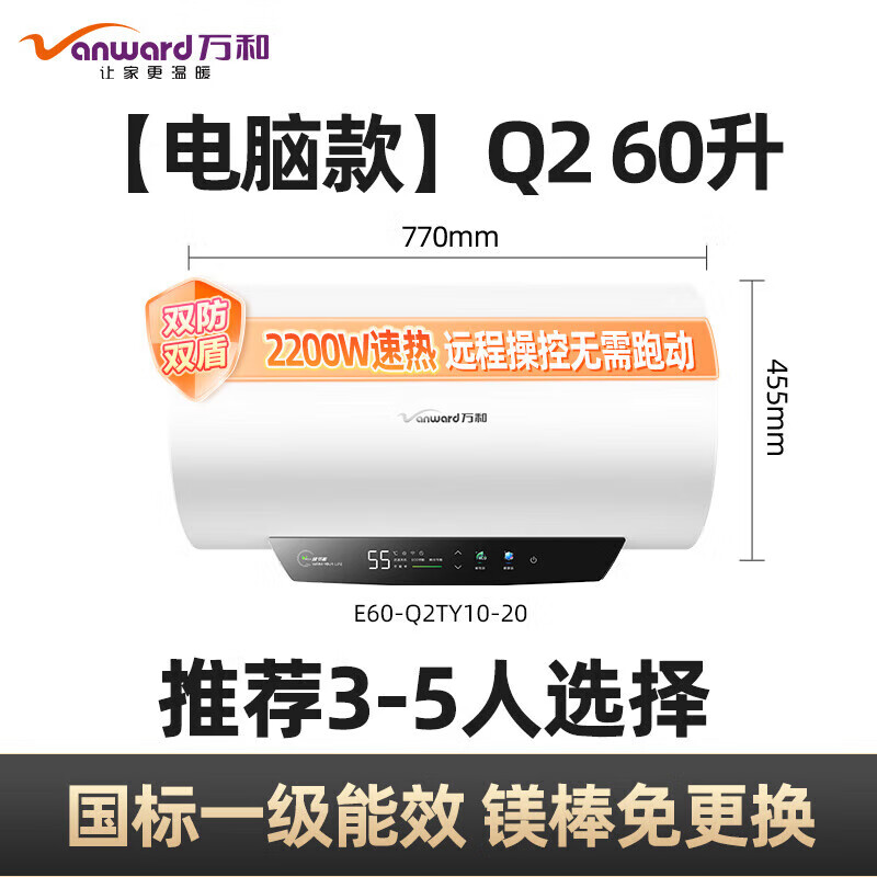 万和(Vanward)储水式电热水器家用储水式租房用一级60升Q2 E60-Q2TY10-20【60L】 节能省电推荐