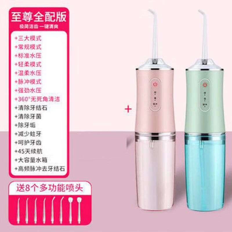 洽苒日本冲牙器家用洗牙器便携电动正畸专用超声波清洁牙齿神器水牙线 情侣款【送8个原装喷嘴】粉色+绿色 8支喷头 正品