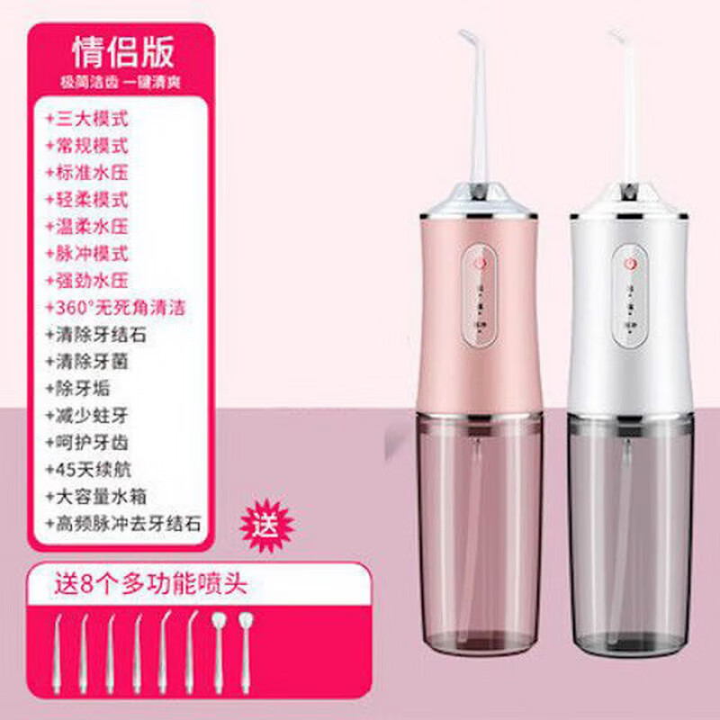 洽苒日本冲牙器家用洗牙器便携电动正畸专用超声波清洁牙齿神器水牙线 情侣款【送8个原装喷嘴】粉色+白色 8支喷头 正品