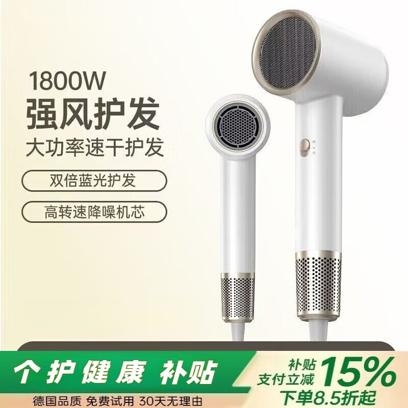 戴森德乐高速吹风机吹头发家用静音1800W大功率大风力电吹风恒温护发吹风筒降噪风筒送家人女友情人节礼物 [白金色Pro]1800W大功率+大风力快速干发 双倍蓝光护发+高转速降噪机芯