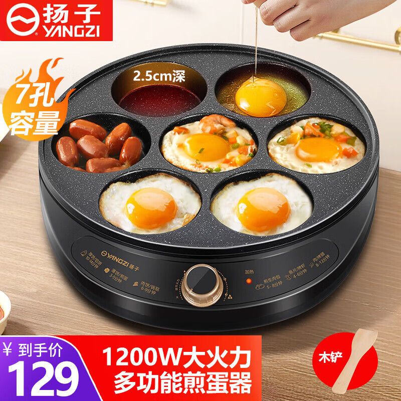 扬子煎蛋锅插电煎蛋神器早餐机7孔多功能迷你不粘蛋堡机煎饼煎牛排鸡蛋汉堡锅车轮饼机 30cm口径单锅