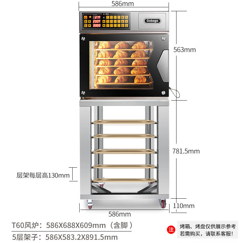 高比克(UKOEO)高比克T60电烤箱蒸烤箱一体机家用多功能台式烘焙电蒸汽烤箱大容量60L私房蛋糕专业烘焙设备 T60架子5层 69L 下单前请联系客服确认