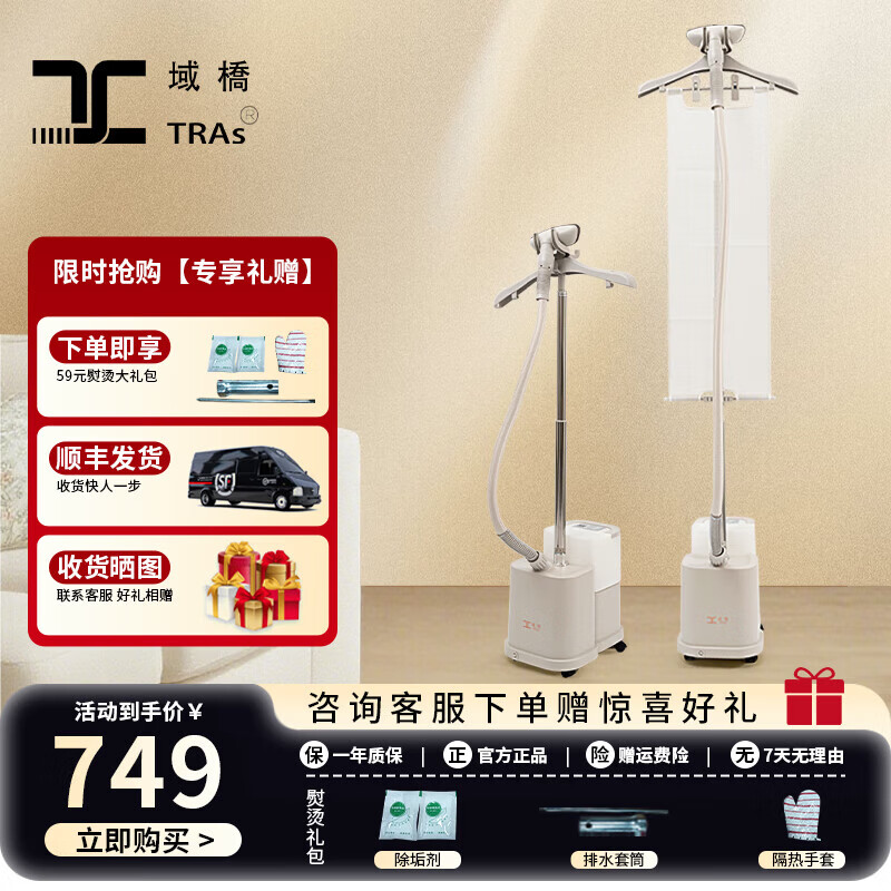 域桥挂烫机家用商用服装店专用2025新款手持大蒸汽全铜芯熨烫机立式大功率熨斗一体机护理烫衣服神器 熊猫黑+熨衣布