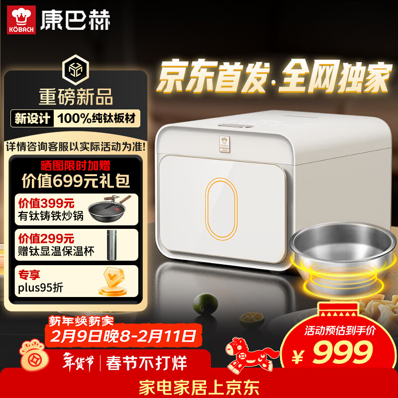 康巴赫纯钛内胆小方盒电饭煲智能电饭锅0氟涂层多功能家用大容量母婴材质内胆不粘锅Pura3L 京东独家