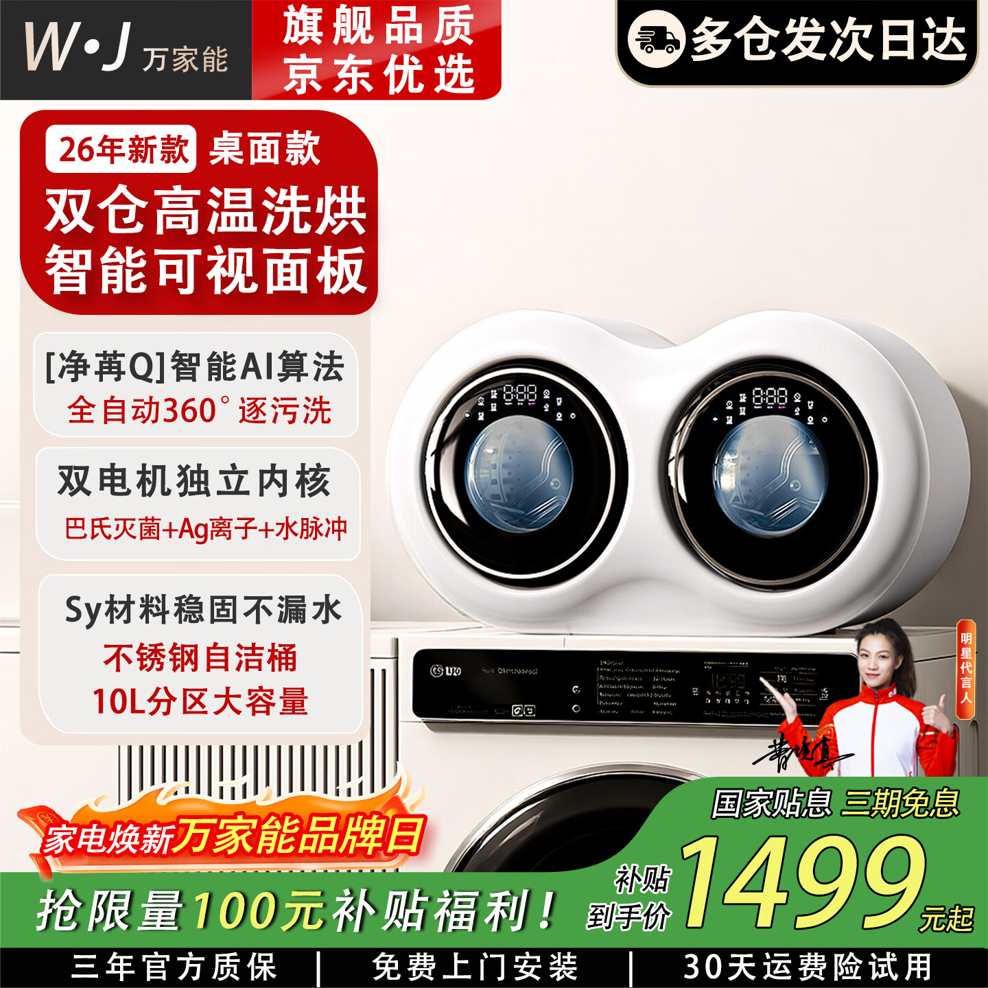 万家能双仓内衣洗衣机全自动洗烘一体滚筒双桶舱分区内衣内裤专用洗衣机洗袜子机小型迷你家用婴儿洗衣机 桌面款【奶白】双舱分区 | 洗烘杀菌 | 强力去渍