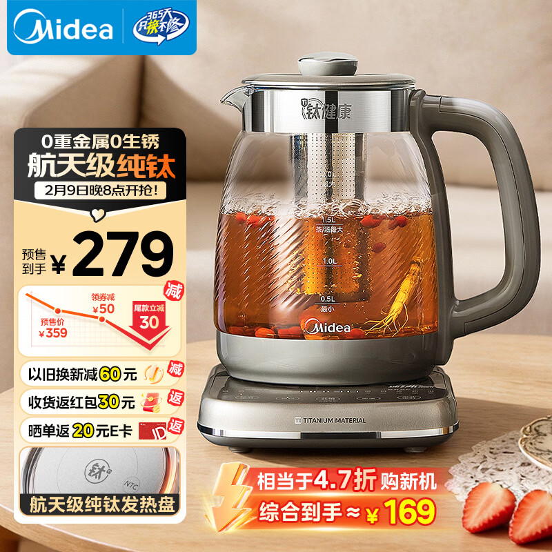 美的(Midea)纯钛养生壶2L全自动大容量2000W速沸烧水316L茶篮家用电热水壶花茶壶恒温煮茶壶年货YS20P705-Ti