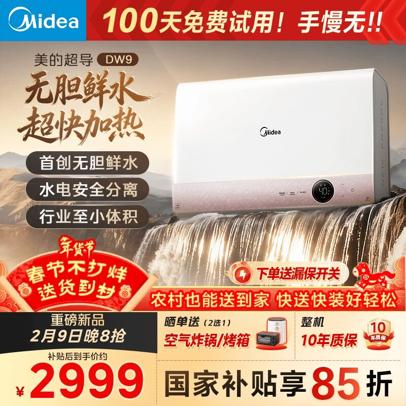 美的(Midea)【超导热水器DW9】4300W速热澎湃热水家用小尺寸无胆鲜活水电热水器扁桶国家补贴15% CD80-DW9