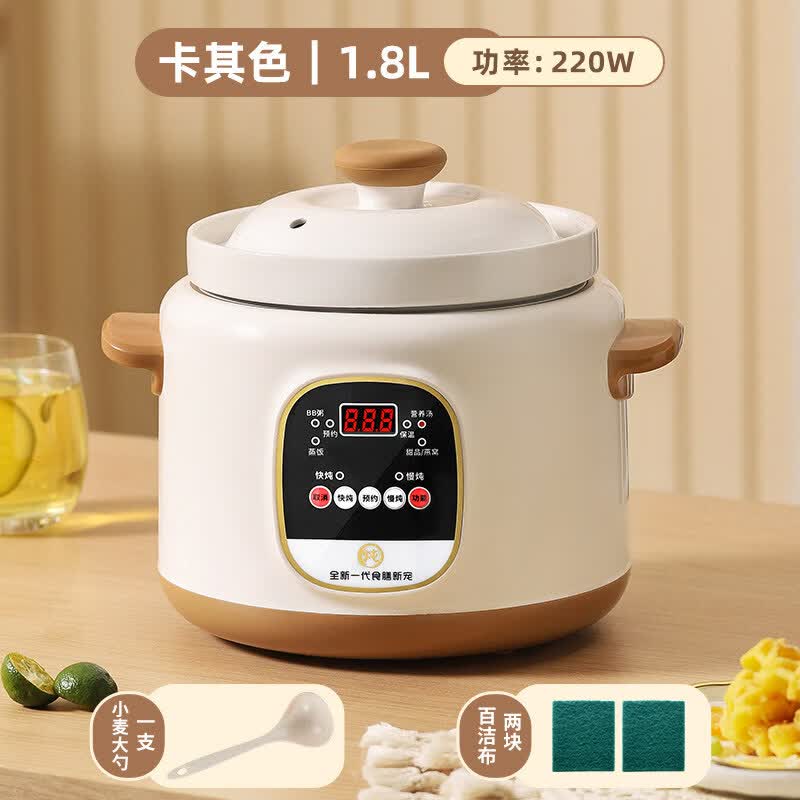 小米宝宝全自动陶瓷电炖锅煲汤煮粥家用多功能紫砂炖盅炖汤锅神器白瓷砂锅 【白陶内胆】卡其 (不可蒸饭) 1.8L