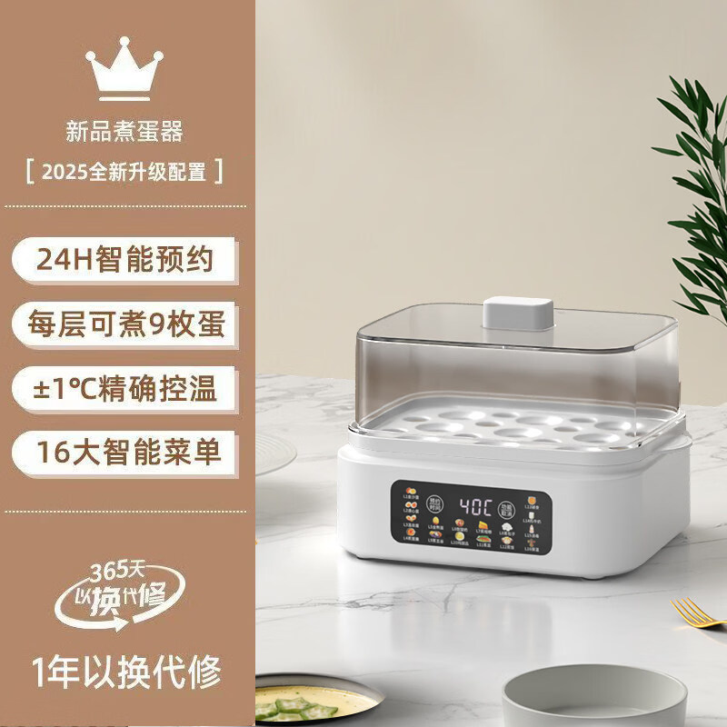 小米宝宝煮蛋器大容量可预约定时蒸蛋器自动断电多功能家用蒸蛋机电蒸锅 单层 预约定时款-不带蒸碗