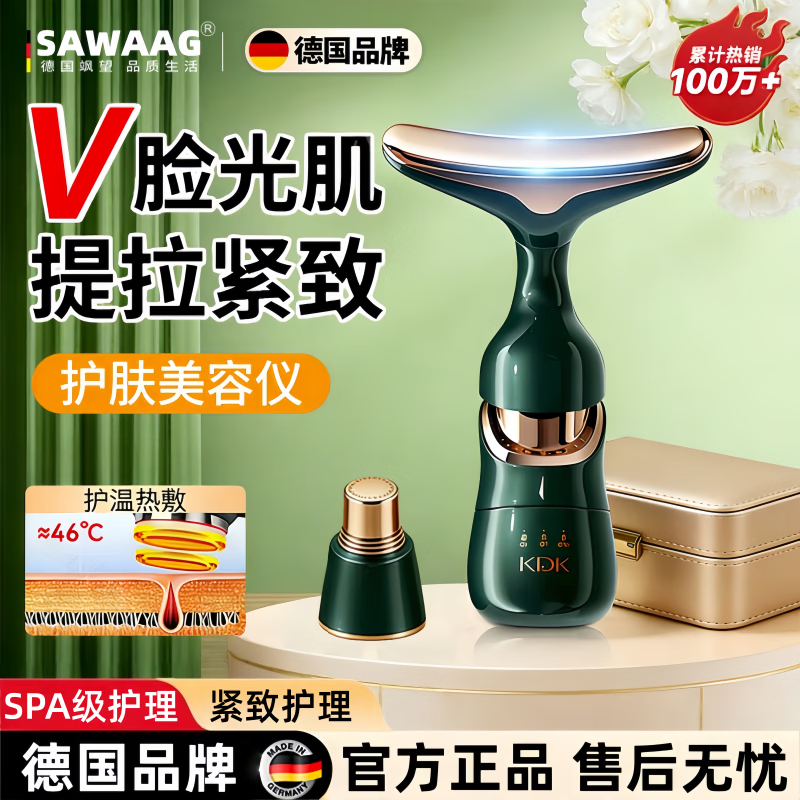 飒望德国颈部脸部眼部美容仪淡法令纹颈纹面部提拉紧致v脸补水微电流家用导入按摩仪生日礼物女 红色【颈部+眼部+脸部】三合一按摩美容仪 紧致淡纹丨一仪三体-螺旋替换